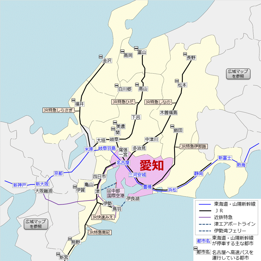| 富山・金沢・福井方面 | 高速バス(名鉄バス) | 名古屋 |