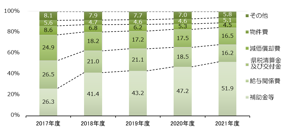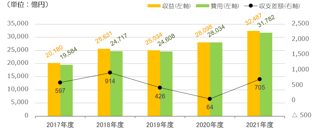 *2018年度に国民健康保険事業特別会計新設による増(収益 5,741億円、費用 5,574億円(うち補助金 5,537億円))