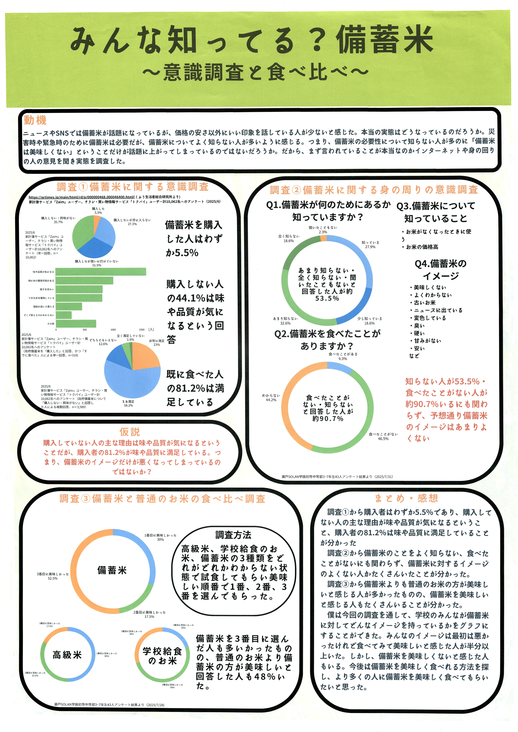 テーマ | みんな知ってる?備蓄米~意識調査と食べ比べ~ |