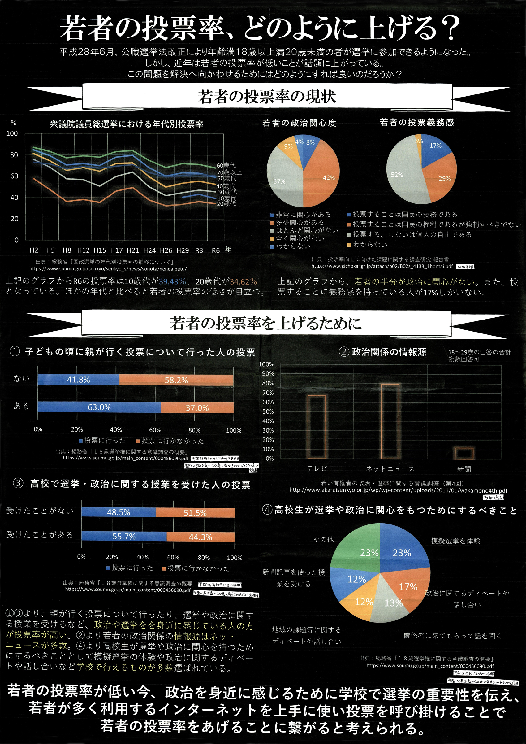 講評 「地域ガチャ」というテーマが興味を惹き、都心と地域との違いをグラフでわかりやすく示している作品です。矢印や色使いが工夫されていて、内容が見やすく整理されており、何を伝えたいかがよく伝わる点が優れています。